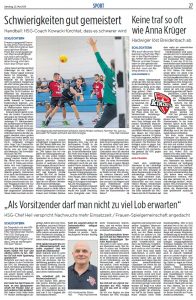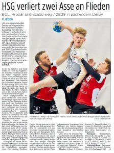 Vorsitzender Stefan Heil verabschiedet Spielerinnen und Trainer der Frauen und Spieler von Männer I und bedankt sich für die HSG Kinzigtal mit einem Präsent.